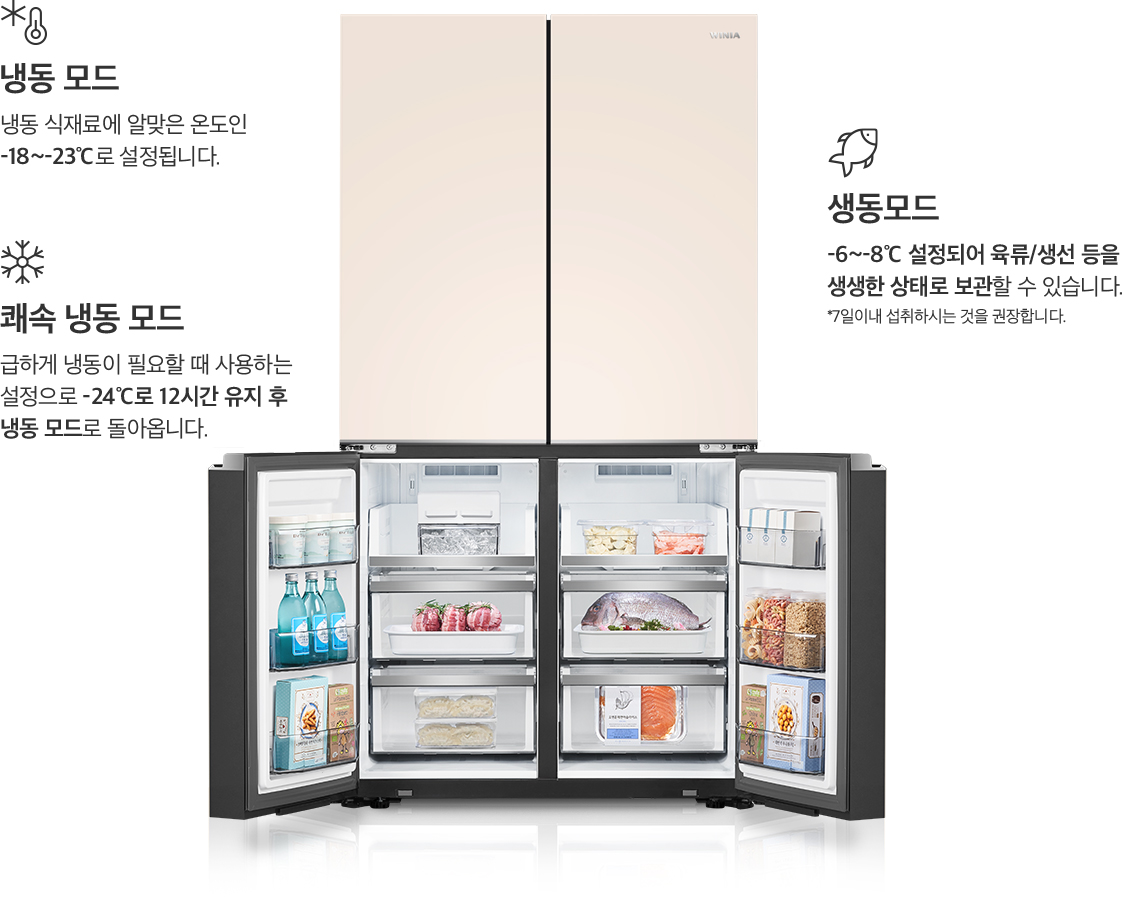 - 냉동 식재료에 알맞은 온도인 -18~-23℃로 설정됩니다.