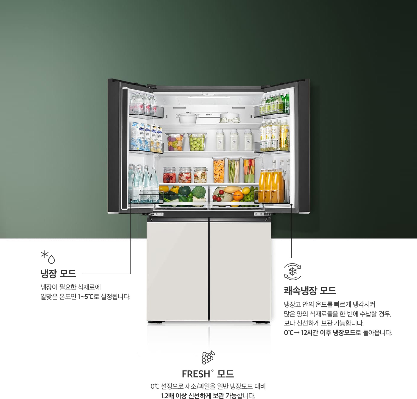 - 냉장이 필요한 식재료에 알맞은 온도인 1~5℃로 설정됩니다.