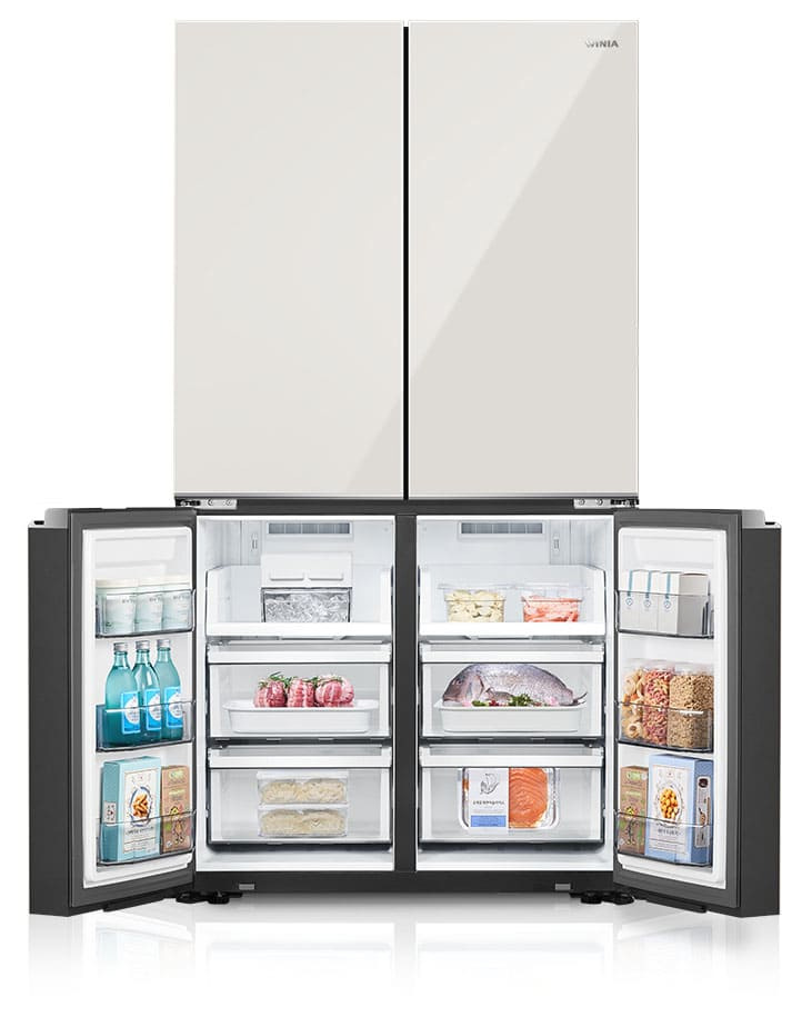 - 무거운 냉동 보관 식품도 쏟아짐 없이 안전하게 보관, 슬라이드 방식으로 안쪽에 보관된 음식도 손쉽게 넣고 꺼낼 수 있습니다.