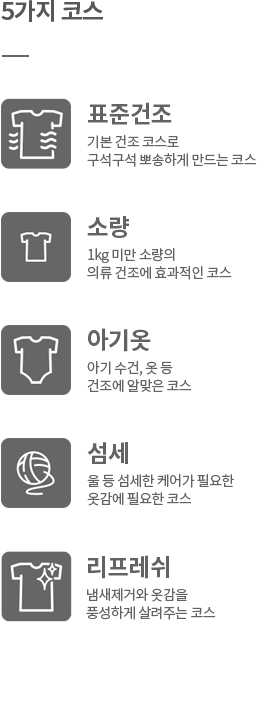5가지 맞춤 코스로 옷감에 맞는 건조 코스 선택과