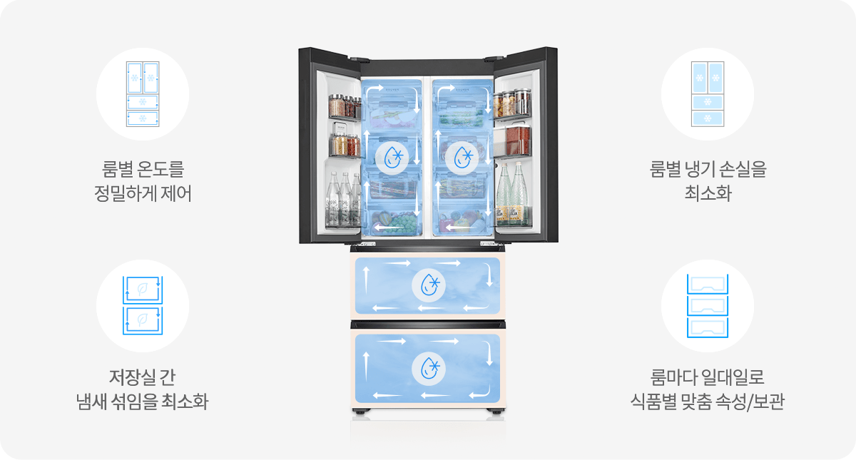 각각의 룸마다 설치된 냉각기로 냄새 섞임을 막아주는 것은 물론이고