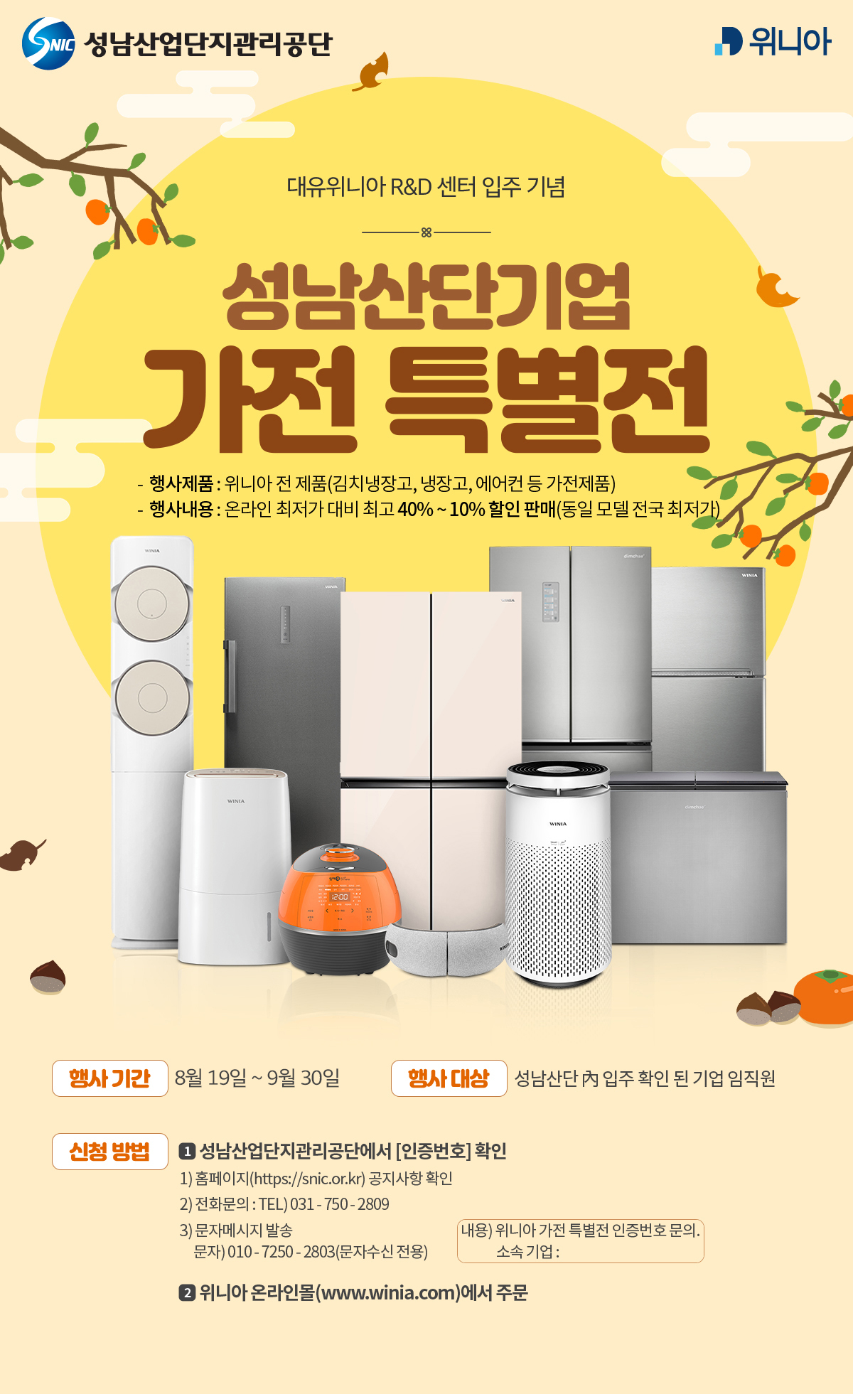 성남산단기업 가전 특별전에 오신 것을 환영합니다.